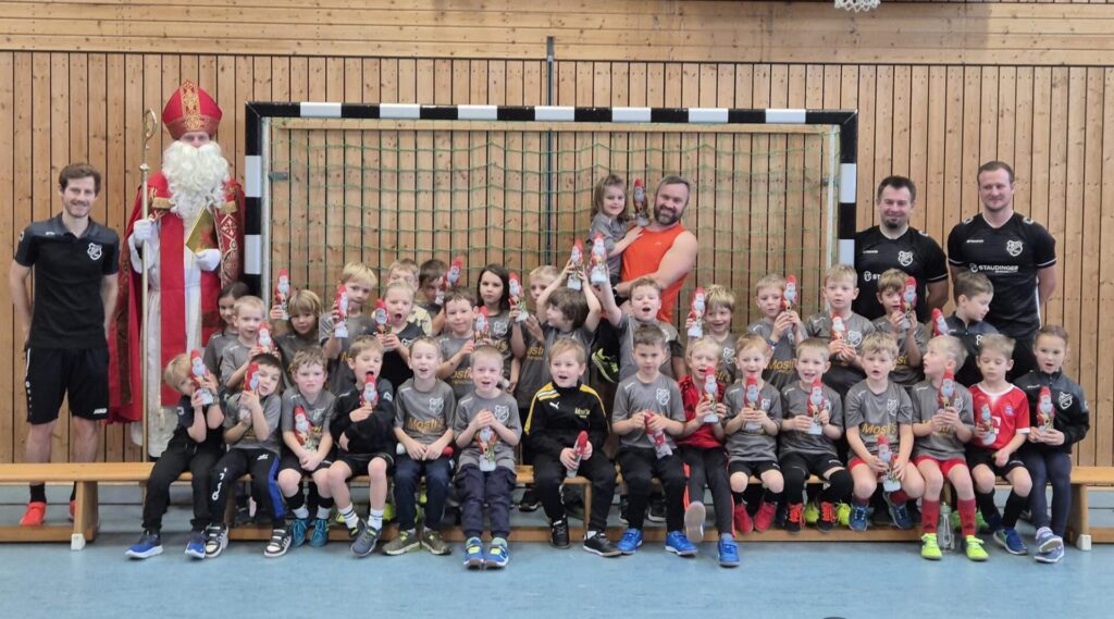 Am Nikolaus-Samstag besuchte der Nikolaus die G Jugend der SG Wendelskirchen-Loiching. Vor fast vollständiger Mannschaft berichte der Nikolaus, was ihm seine Engelchen über das vergangene Fußballhalbjahr zugetragen hatten. Er lobte unter anderem den Trainingseifer und die bereits erlernten fußballerischen Fähigkeiten der Kids. Besonders freute sich der Nikolaus über die mitgebrachten Fußballbilder und das vorgetragene Weihnachtslied. Zum Abschied erhielt jeder einen Schokonikolaus – bevor dann der zweite Trainingsteil weiterging.